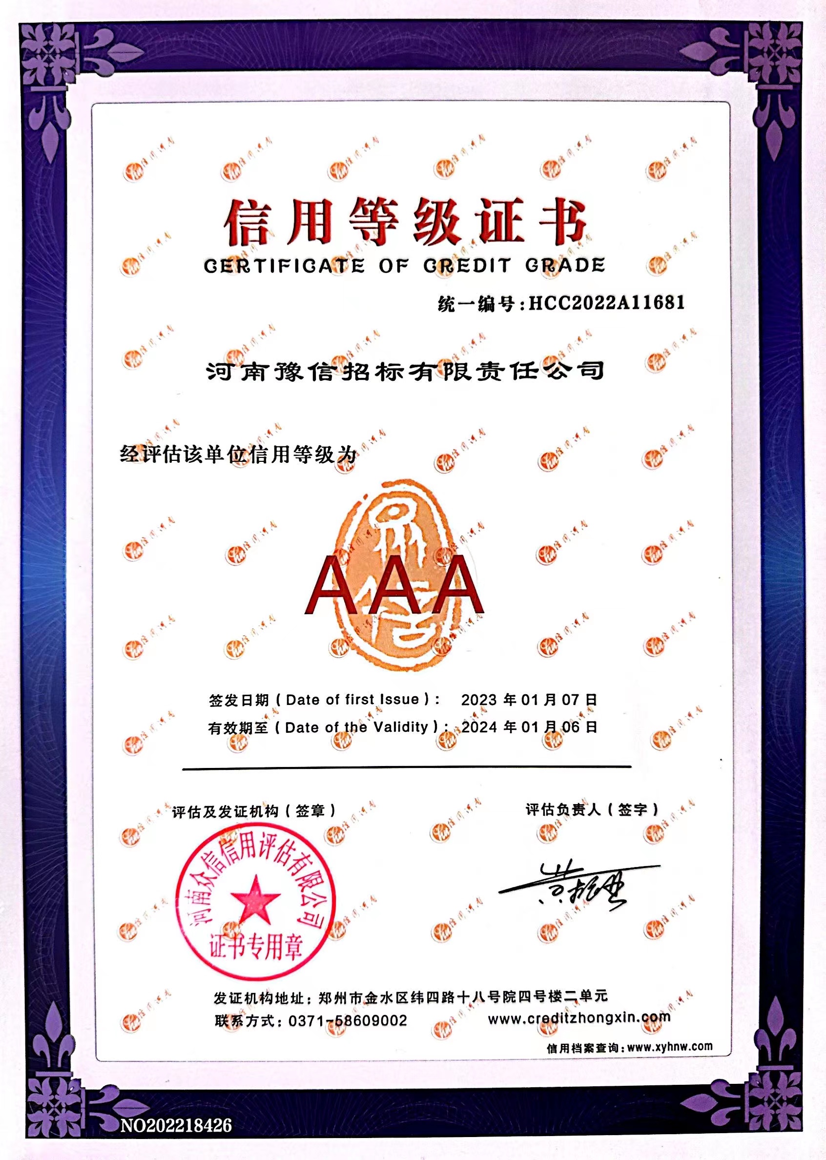 2022年度鄭州市招標(biāo)代理機構(gòu) AAA 級企業(yè) -